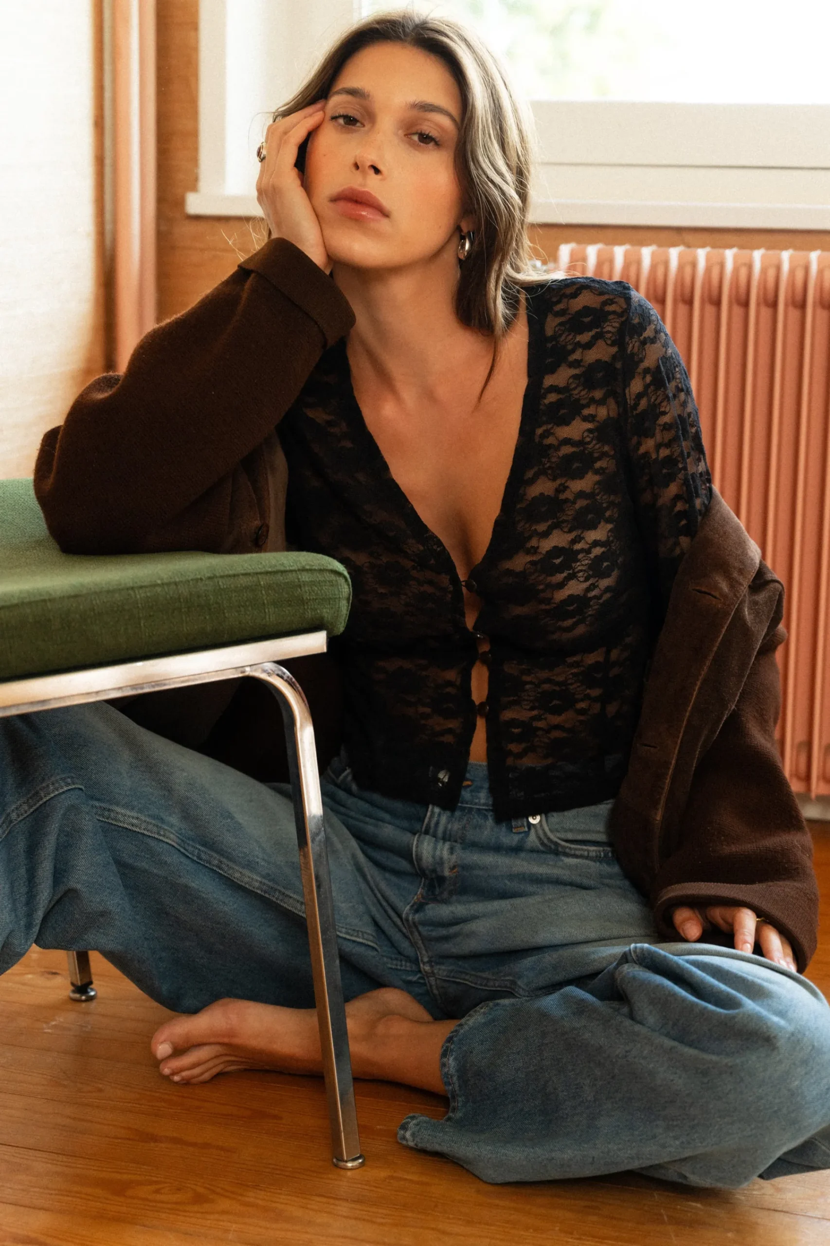 - Tout en dentelle fleurie qui se dessine en transparence sur la peau