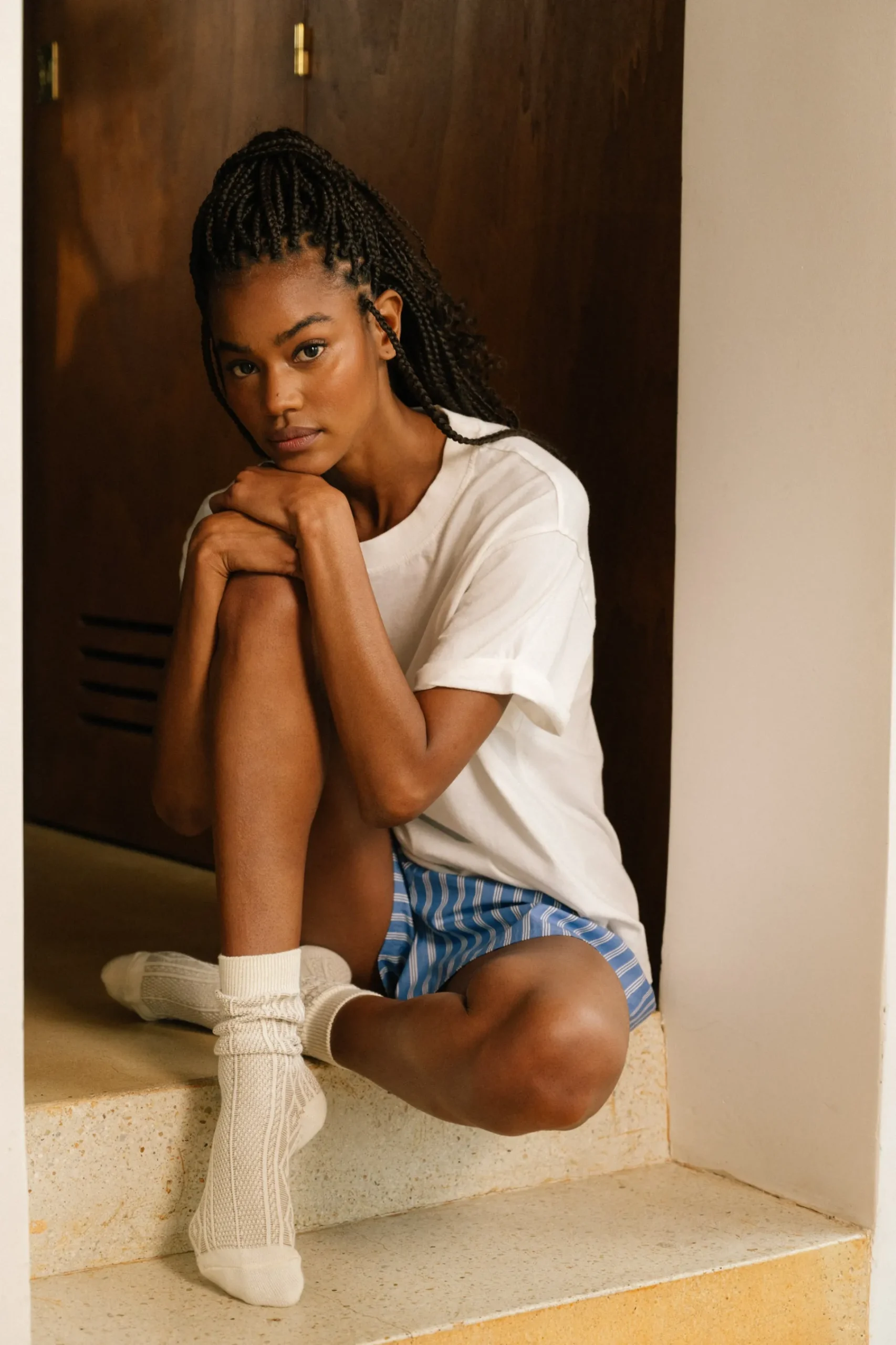 - Ces chaussettes ont été imaginées et créées par Royalties. Nous les avons choisies pour leur petit effet wow qui nous rend aussi belles des pieds jusqu’aux fesses !