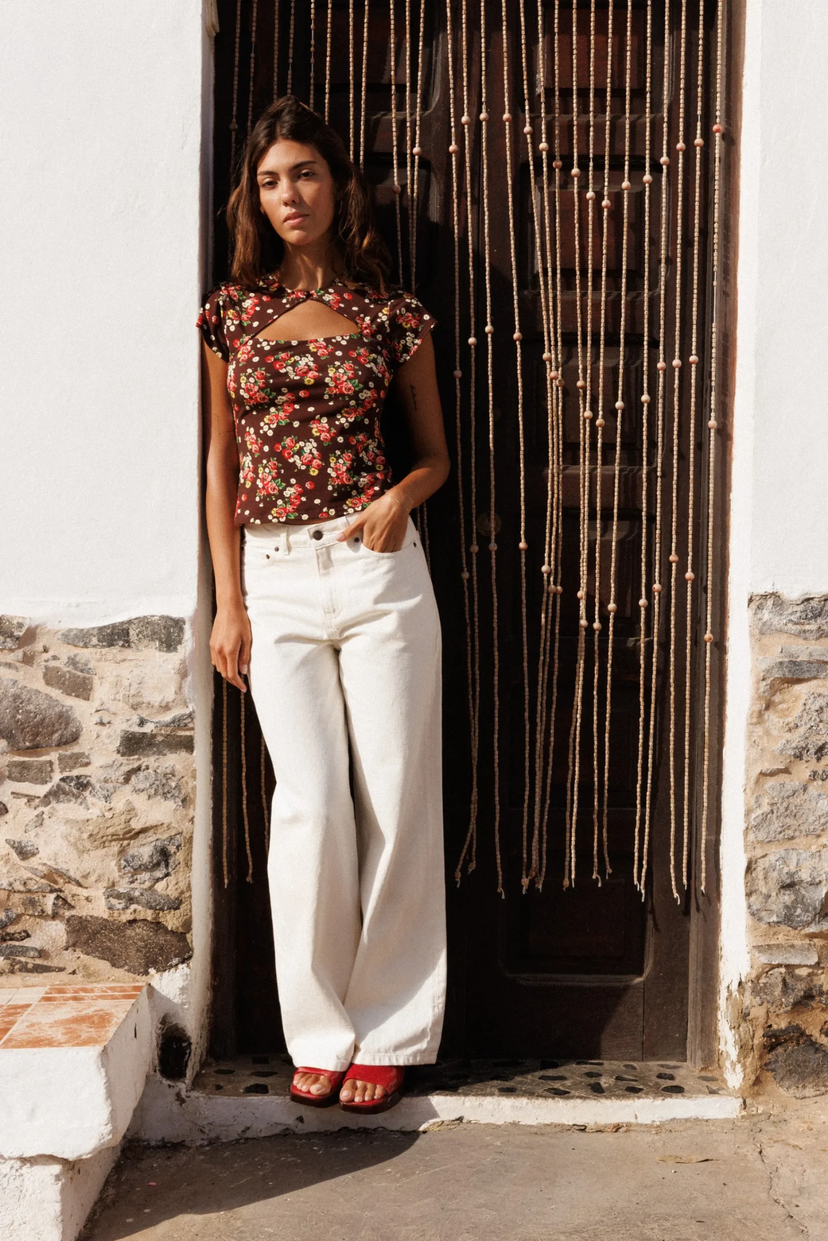 - Un imprimé vintage où un brun lumineux rencontre des fleurs délicates