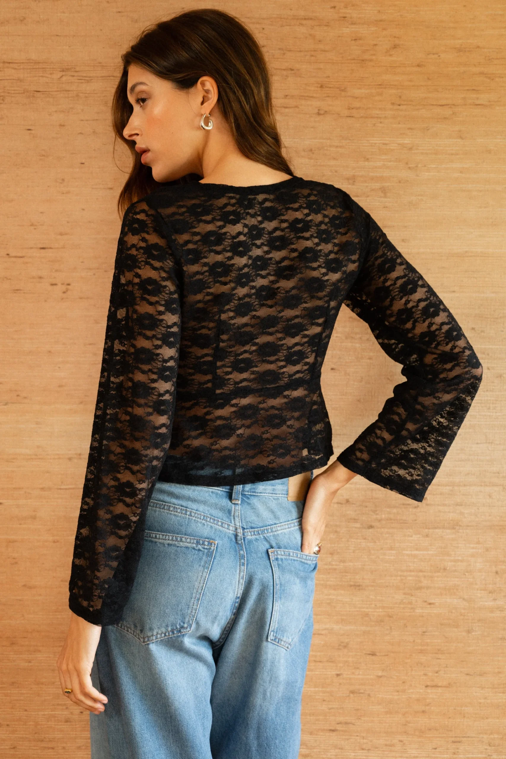 - Tout en dentelle fleurie qui se dessine en transparence sur la peau