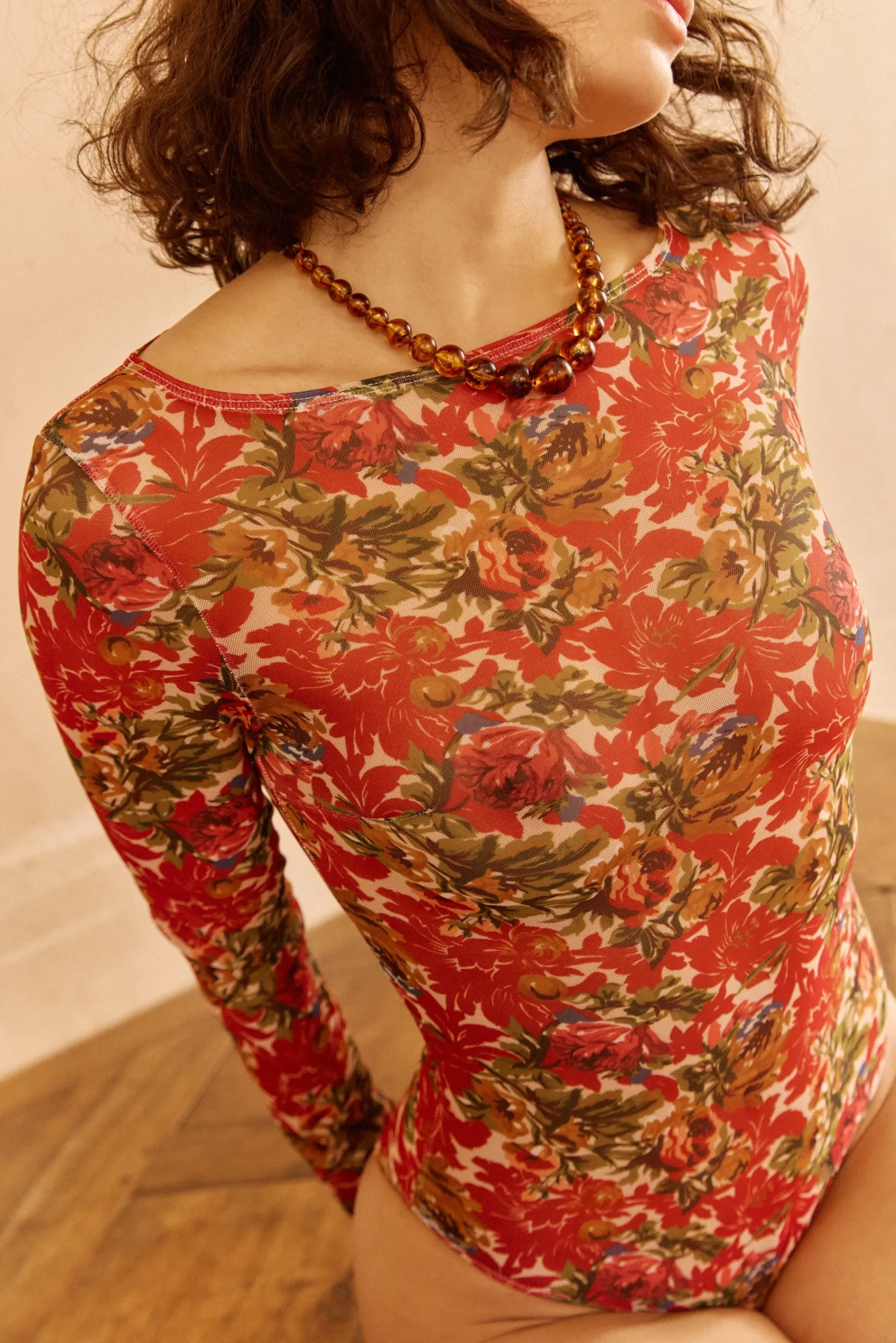 - Un tulle imprimé floral vintage, revisité et recolorisé par nos stylistes pour égayer notre garde-robe hivernale