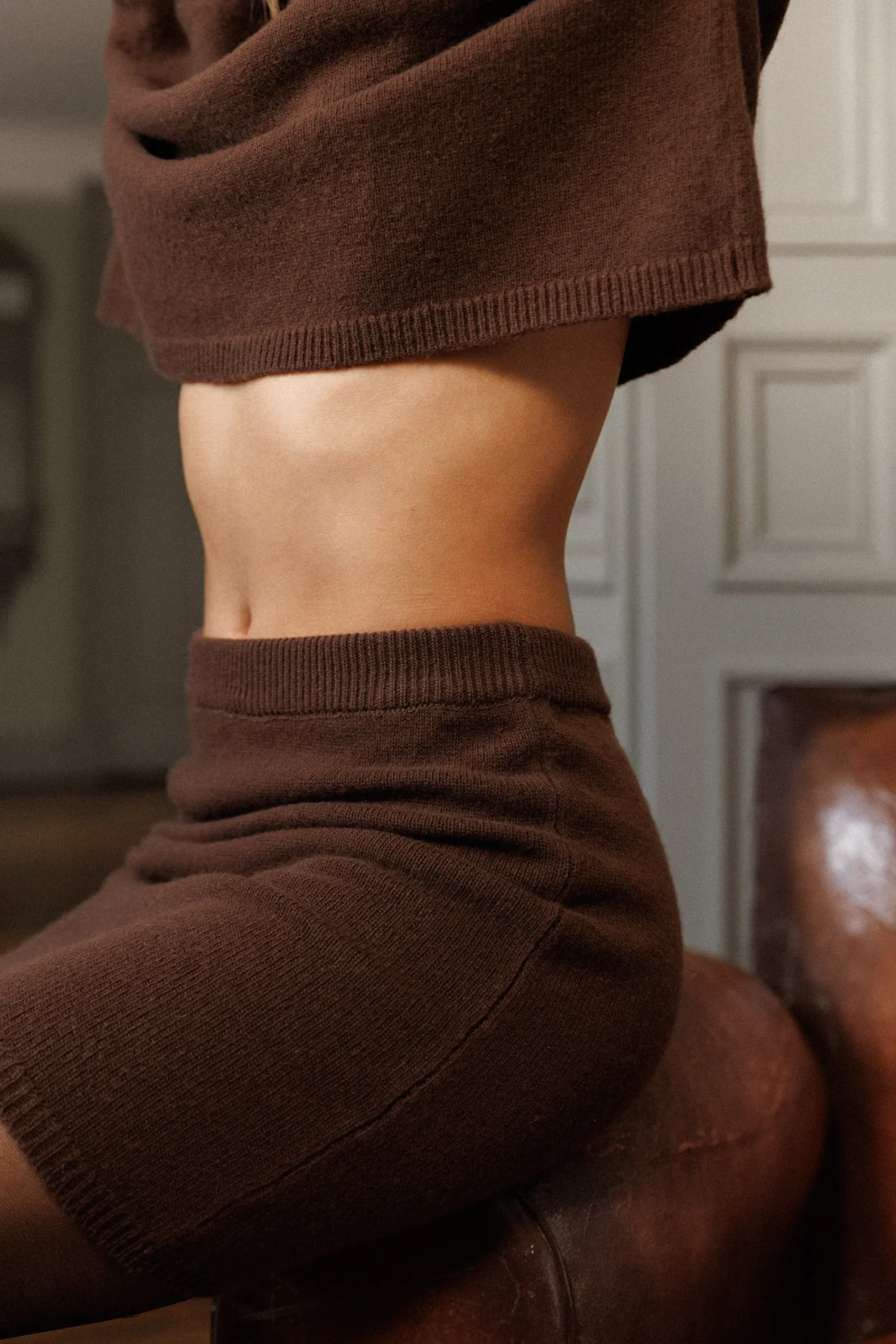 - Une jupe courte moulante en maille