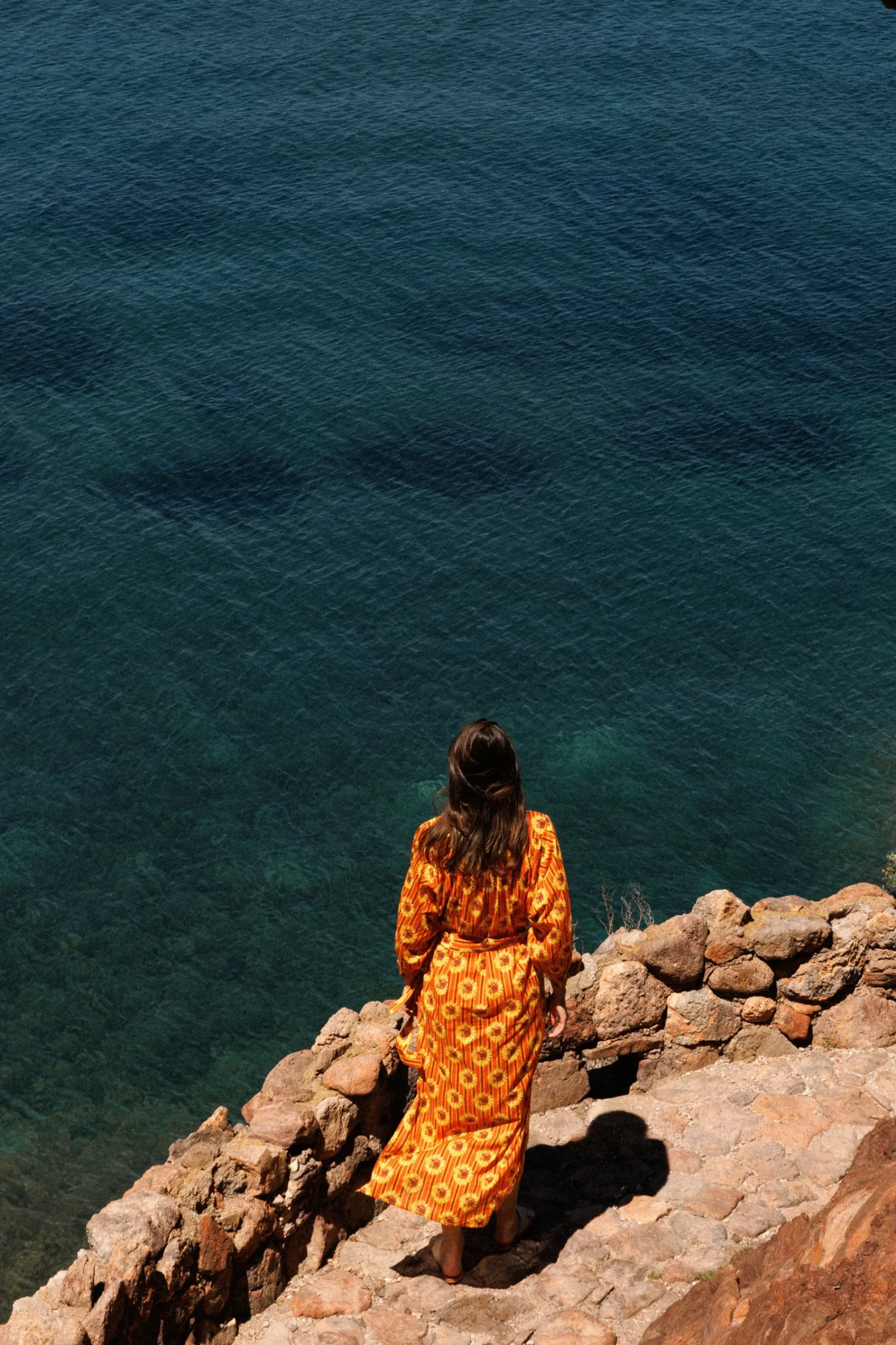 L’été se cueille comme une Fleur du soleil et dans ce jardin de Provence, cette robe longue est une promesse de lumière.