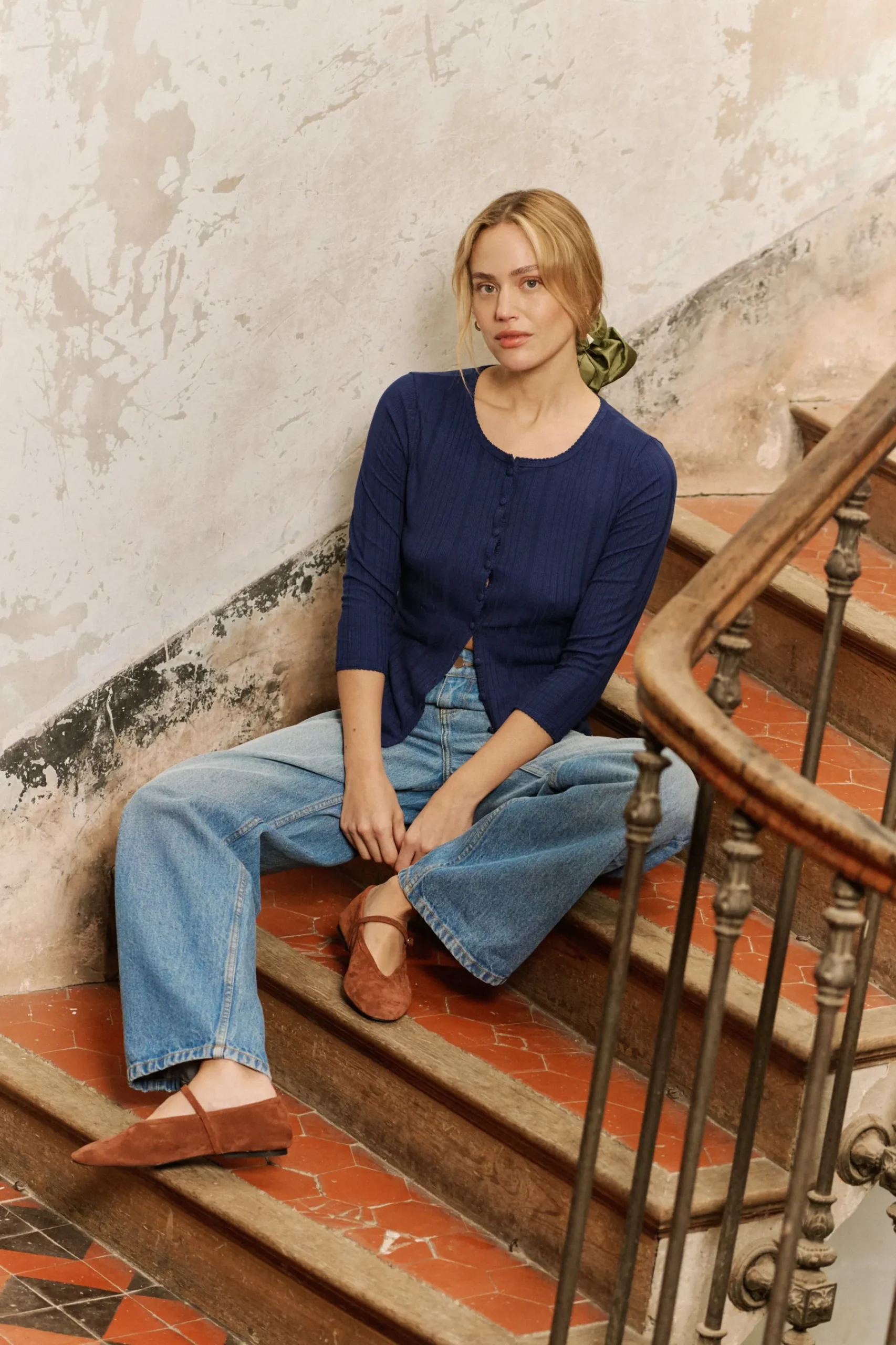 - Une jolie finition croquet à l’encolure, le long de la patte et en bas de manche, dans la matière