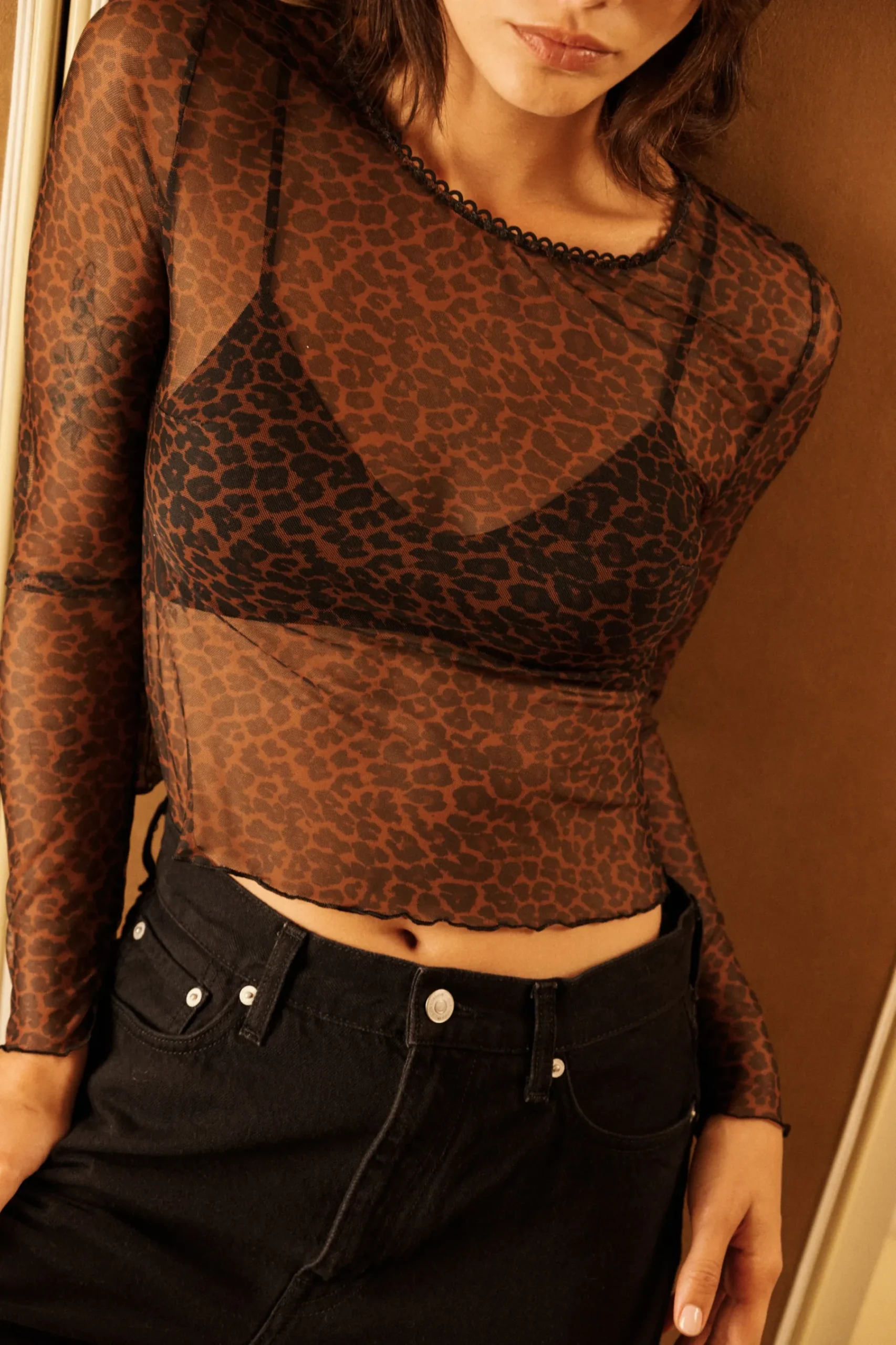 - Le tulle vient dessiner l’imprimé léopard tout en transparence
