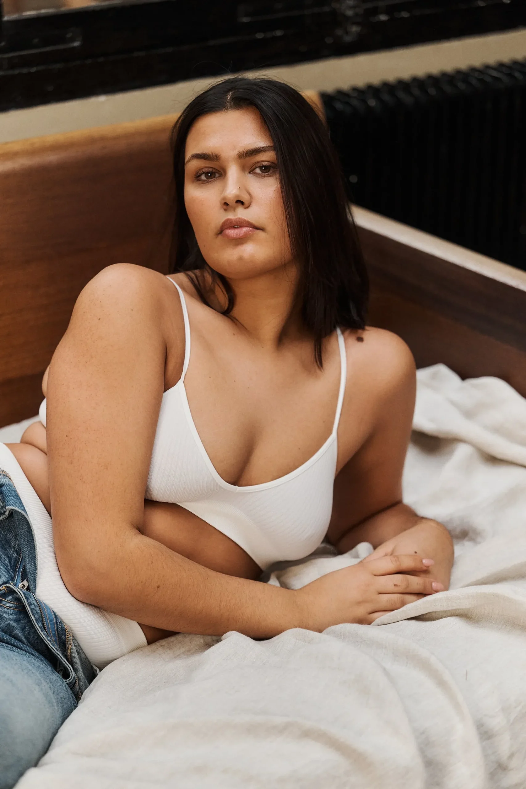 Son grand décolleté et ses fines bretelles la rendent aussi belle que confortable. Nous l’avons créé dans une matière très extensible (et douce) pour épouser parfaitement nos courbes sans entraver nos mouvements. Pour être libre de bouger, de danser, de vivre comme si on ne portait rien.