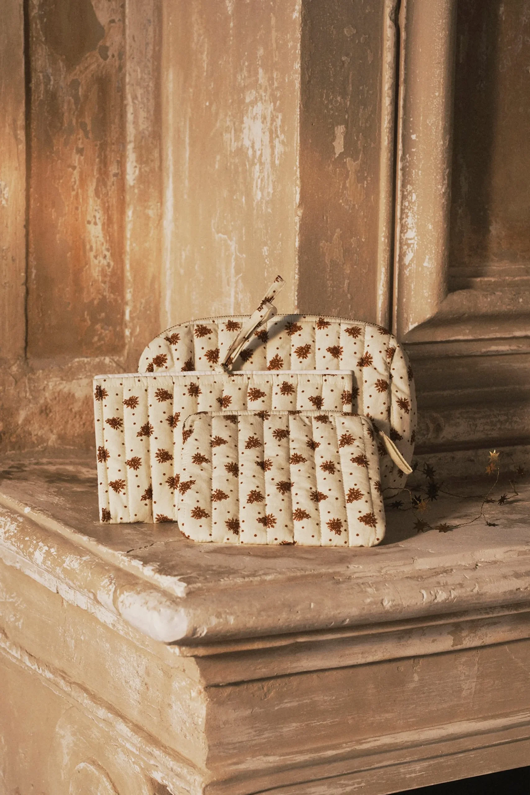 Une grande trousse de toilette en coton matelassé qui permettra d’emporter tous vos produits de beauté ou autres trésors !